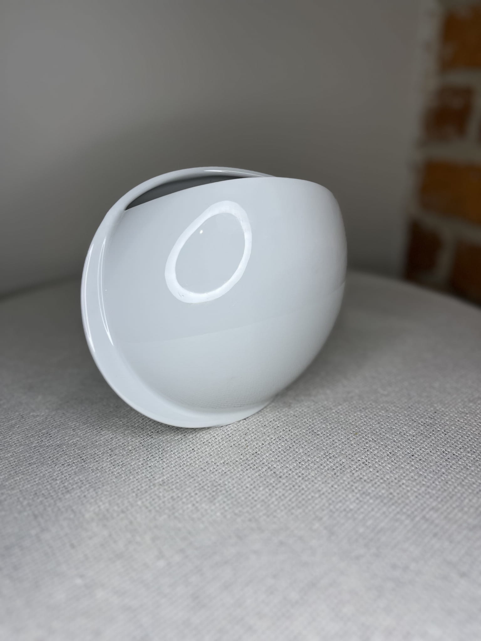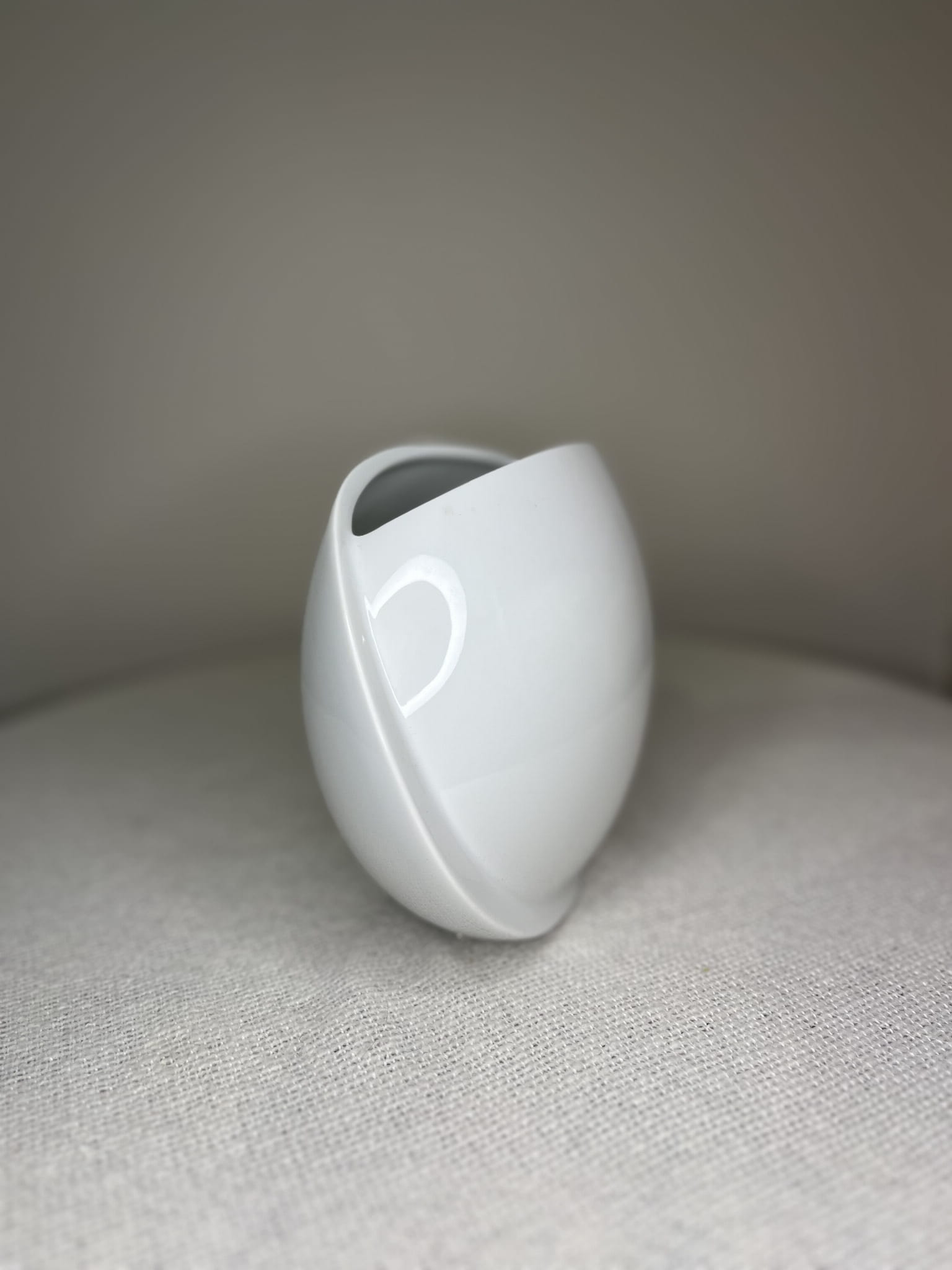 Wazon wyróżnia się gładką, idealnie białą porcelaną o subtelnym połysku, charakterystyczną dla fabryki Hutschenreuther – jednego z najbardziej prestiżowych producentów porcelany w Europie. Jego nowoczesna, organiczna forma sprawia, że prezentuje się niezwykle lekko i elegancko, a jednocześnie stanowi wyrazisty element dekoracyjny.
