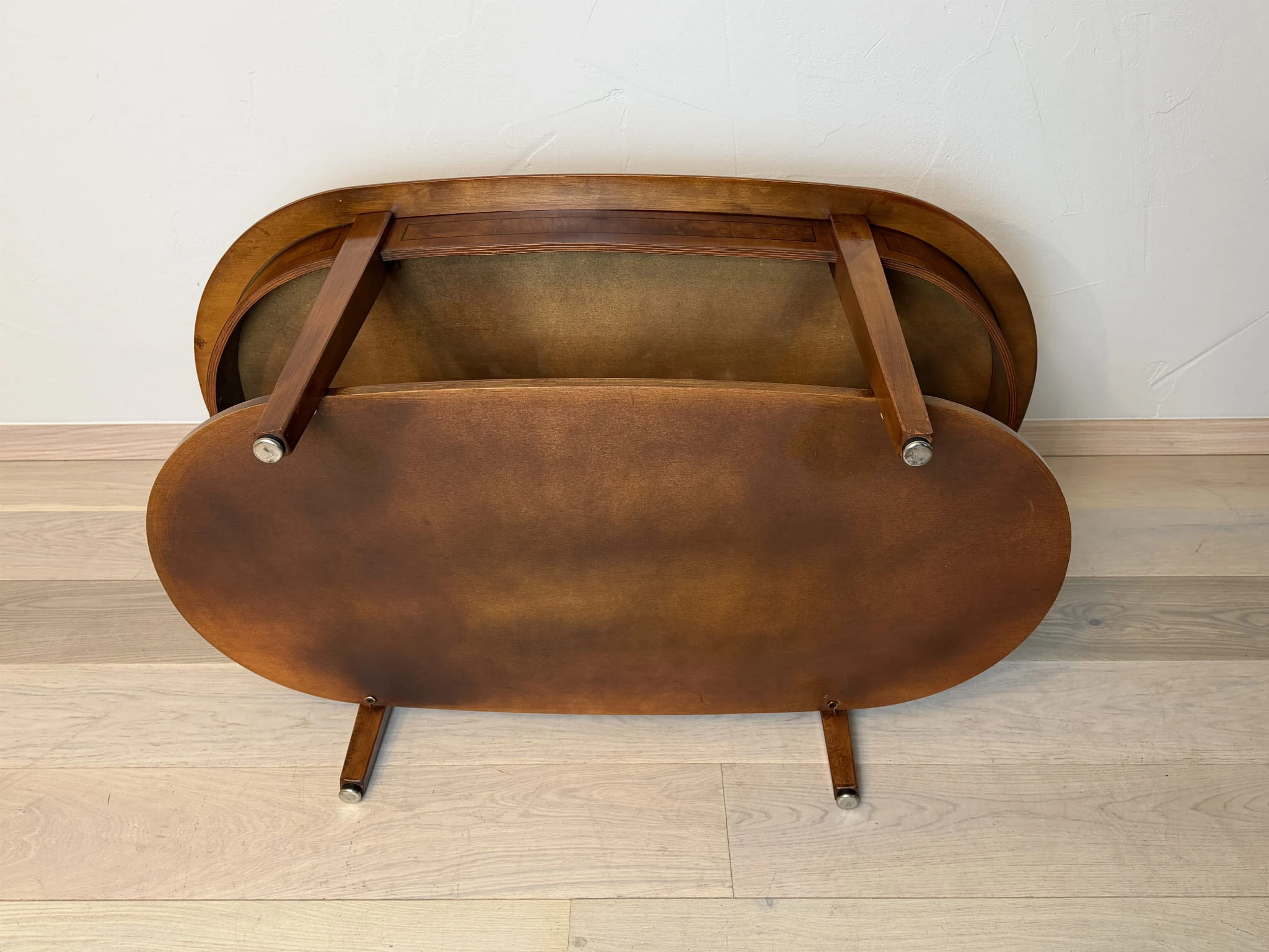 Drewniany stolik kawowy z intarsjowanym blatem – po renowacji, lata 80