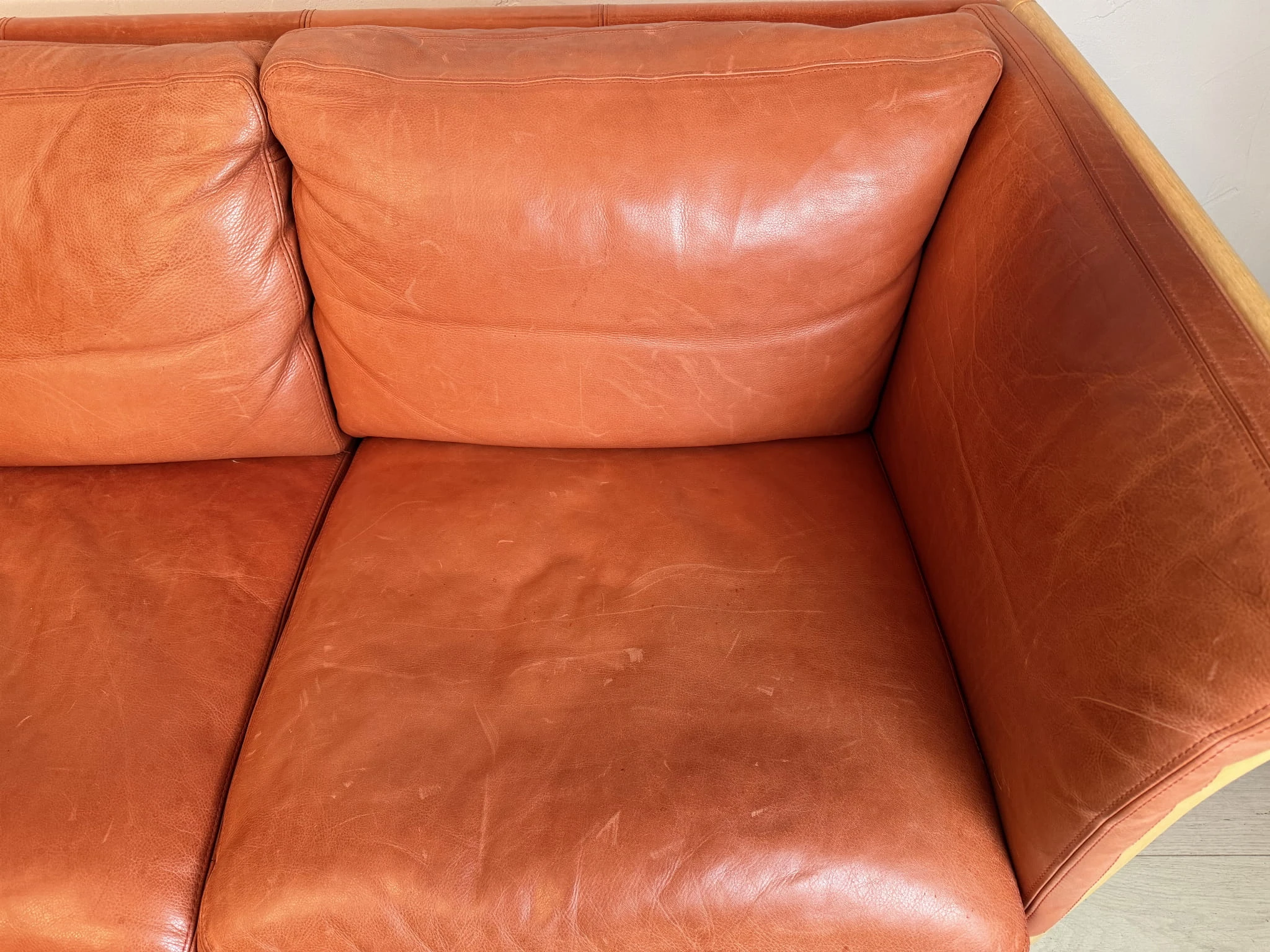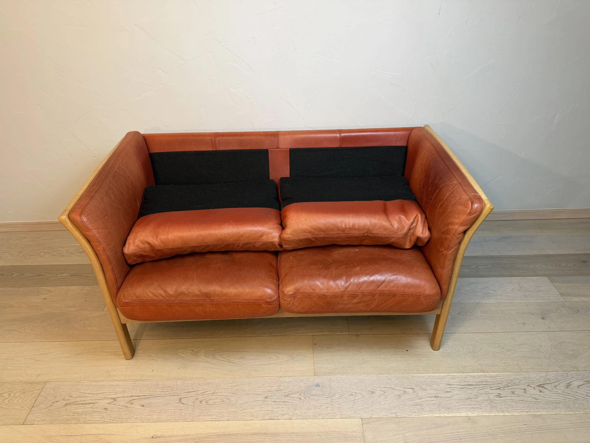 Oryginalna duńska sofa marki Skalma wyprodukowana w latach 90., wykonana z wysokiej jakości naturalnej skóry typu nubuk oraz litego drewna bukowego. To elegancki mebel łączący skandynawską prostotę formy, komfort użytkowania oraz solidne wykonanie charakterystyczne dla duńskiego wzornictwa.