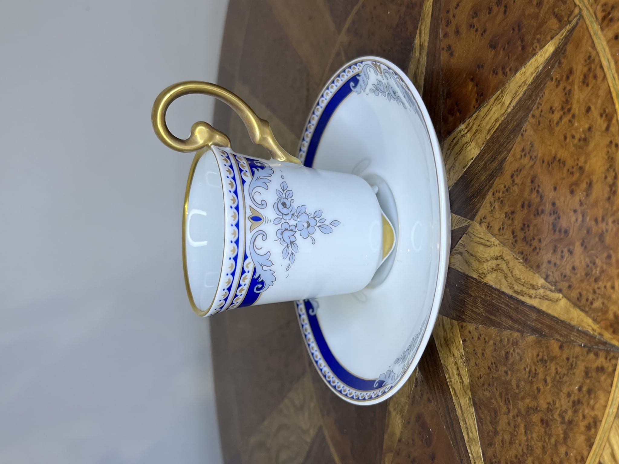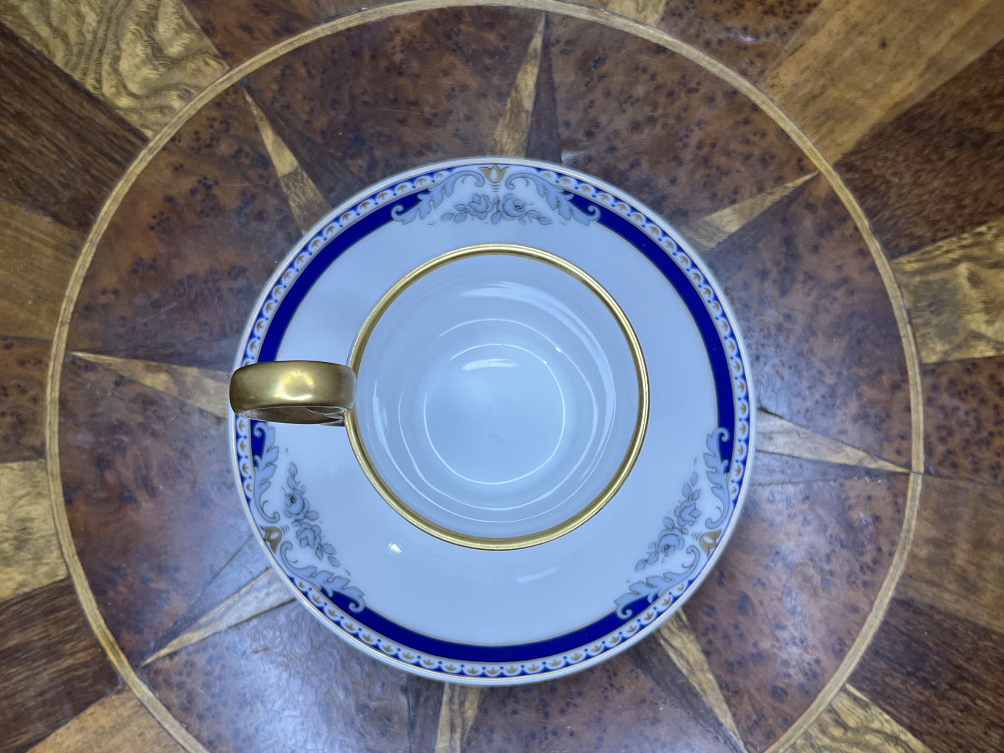 Filiżanka ze spodkiem Porzellanfabrik Johann Seltmann – kobaltowa bordiura i złocenia, 125 ml