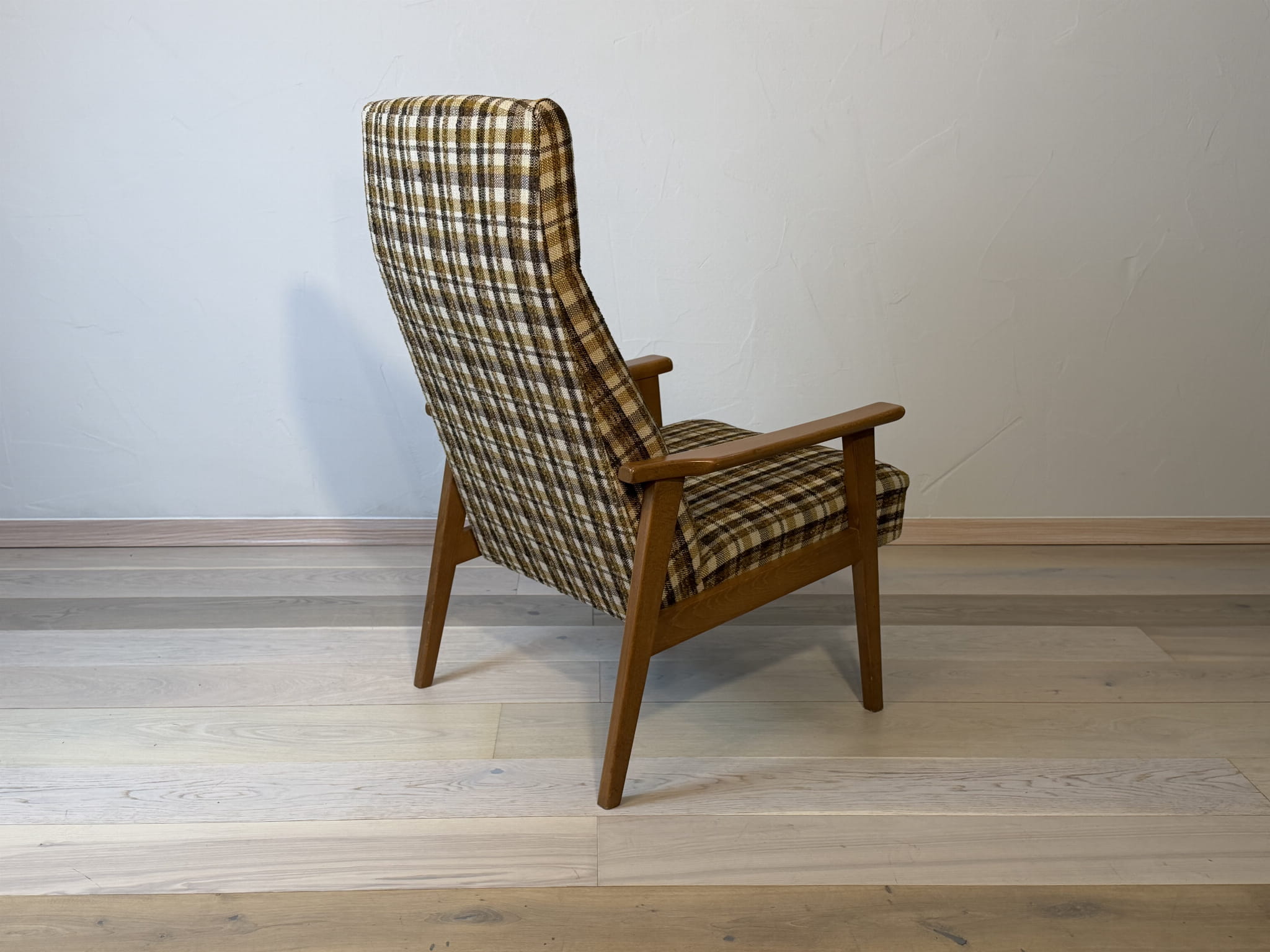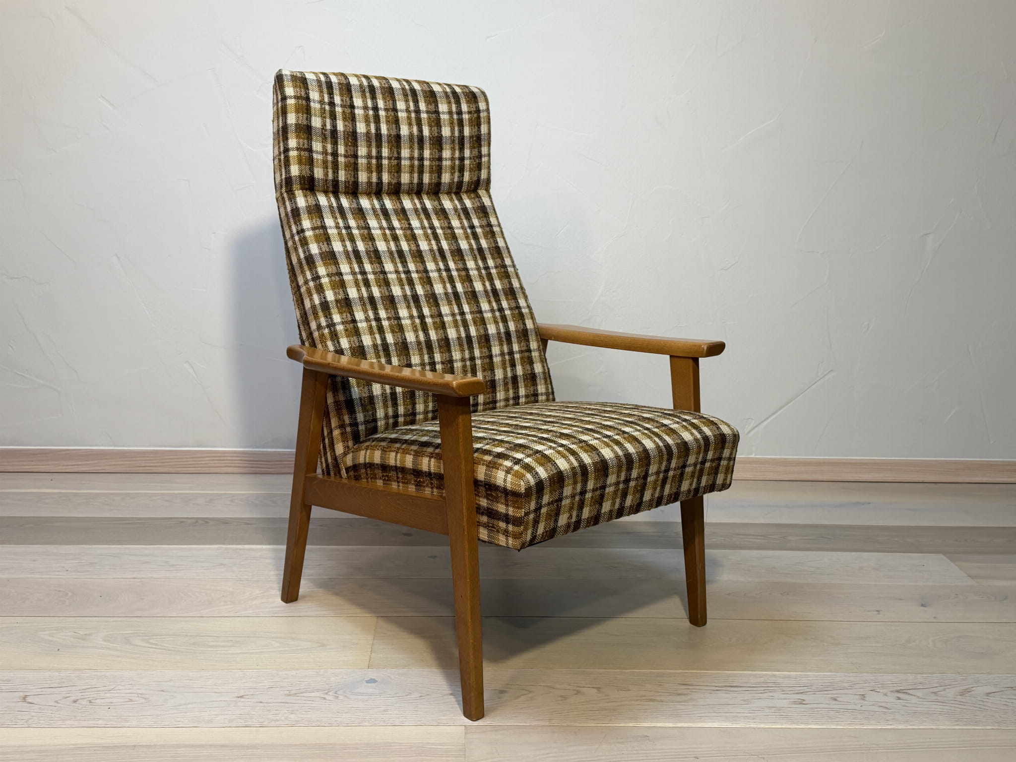 Fotel vintage w brązową kratę | lata 60./70. | mid-century modern