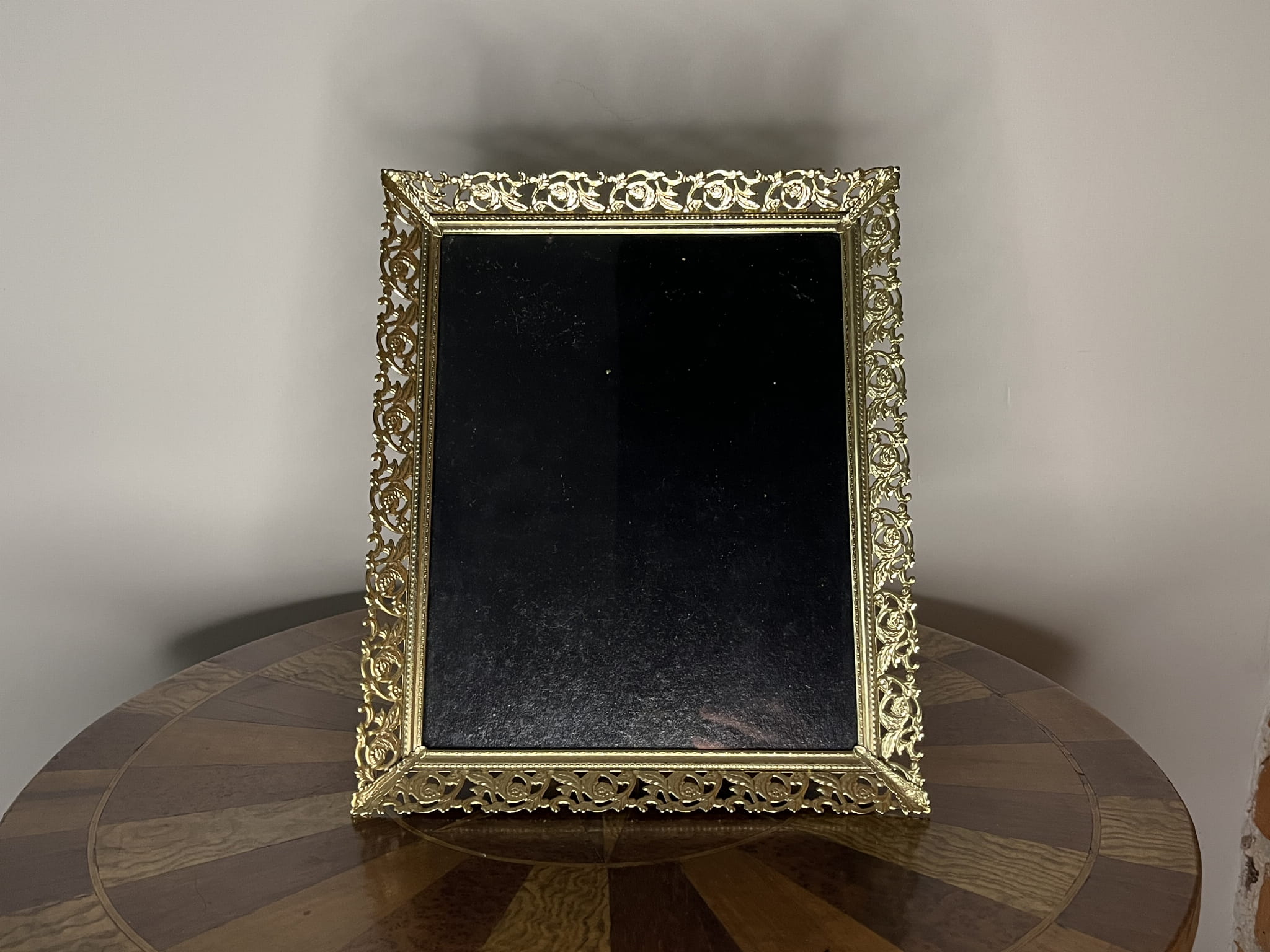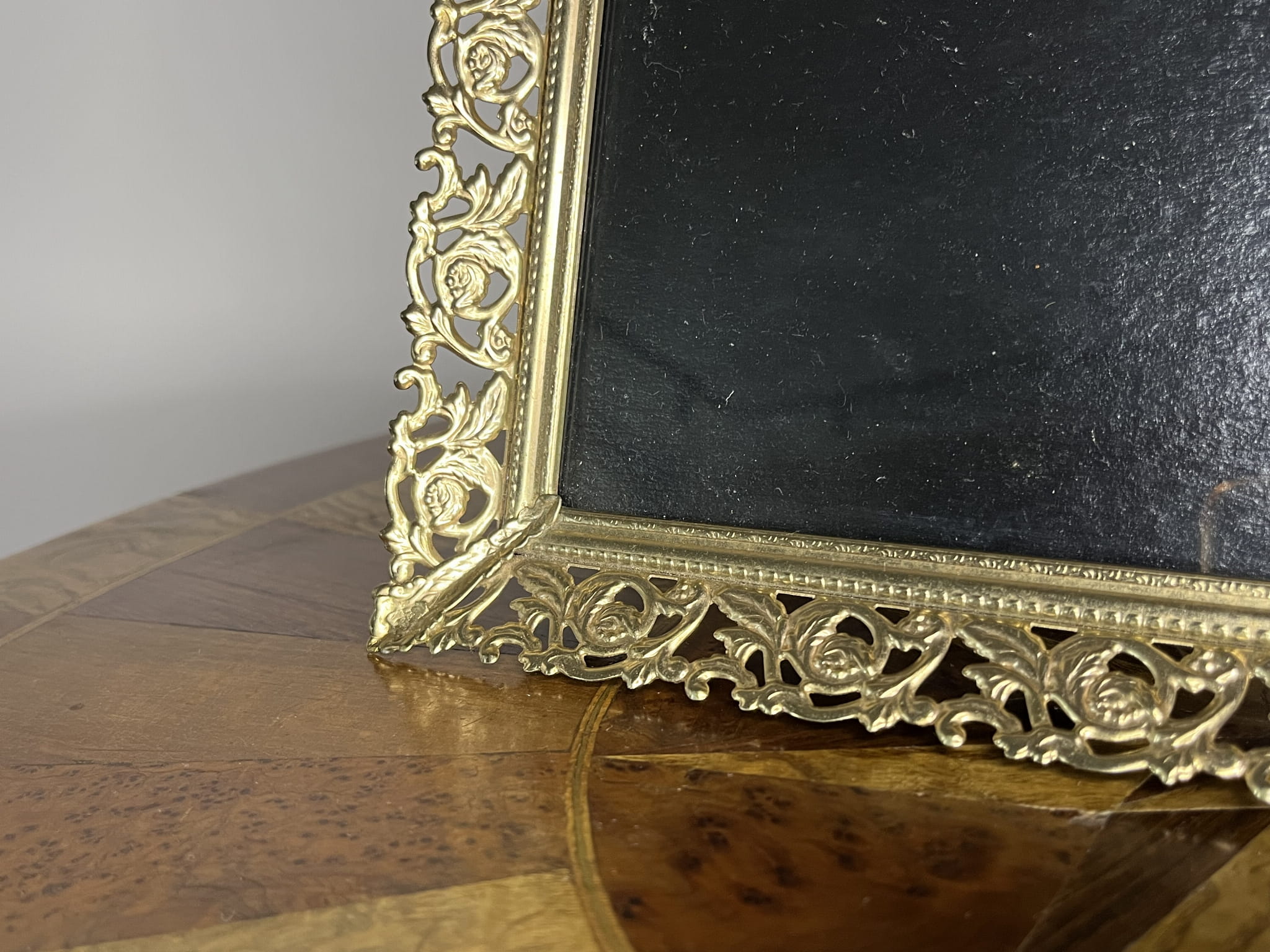 Elegancka ramka do zdjęć wykonana z metalu, utrzymana w klasycznym, dekoracyjnym stylu. Bogato zdobiona ażurowa rama w złotym odcieniu nadaje całości wyrafinowany, ponadczasowy charakter. Doskonale sprawdzi się zarówno jako oprawa fotografii, grafiki, jak i małego obrazu.