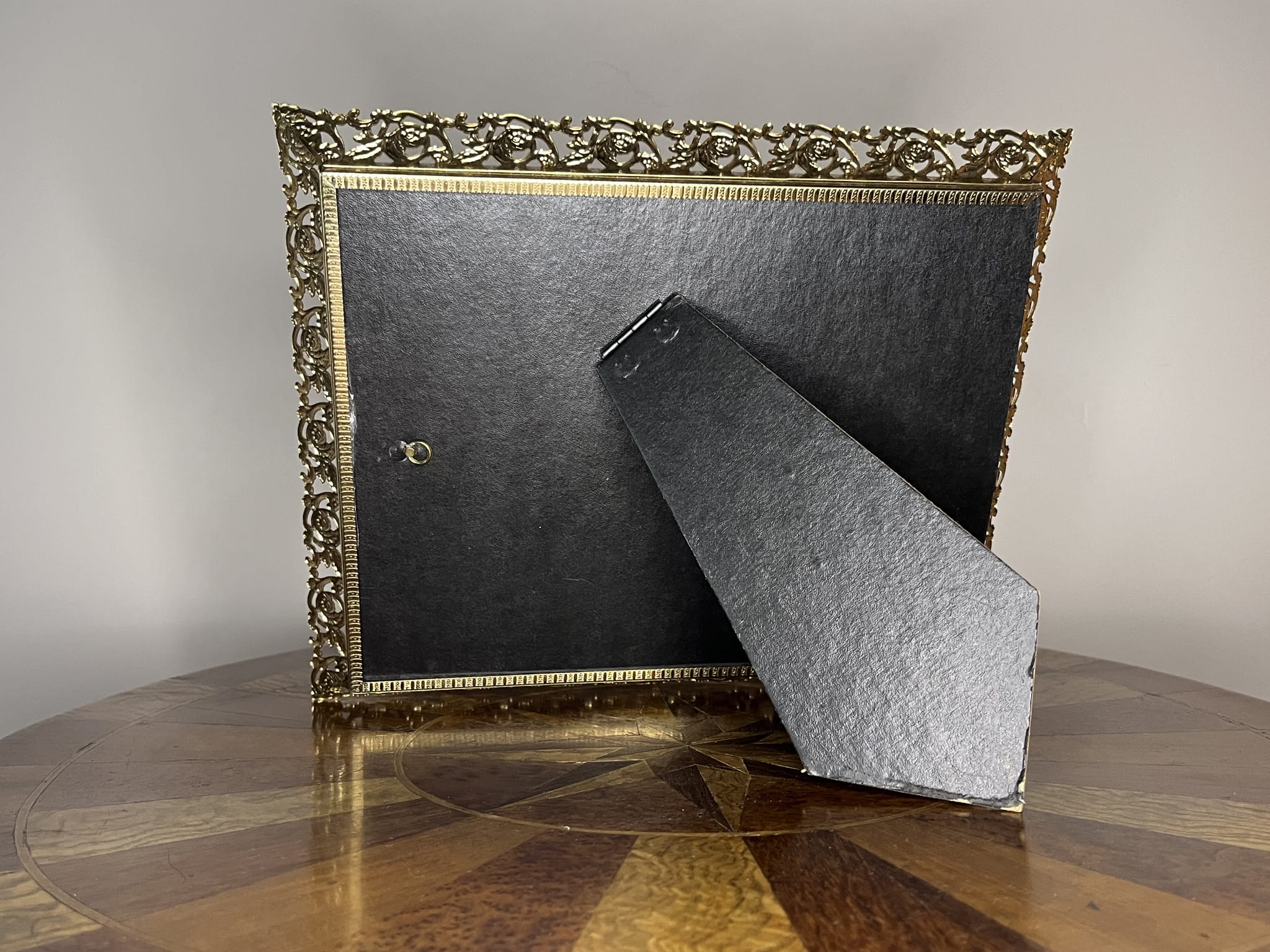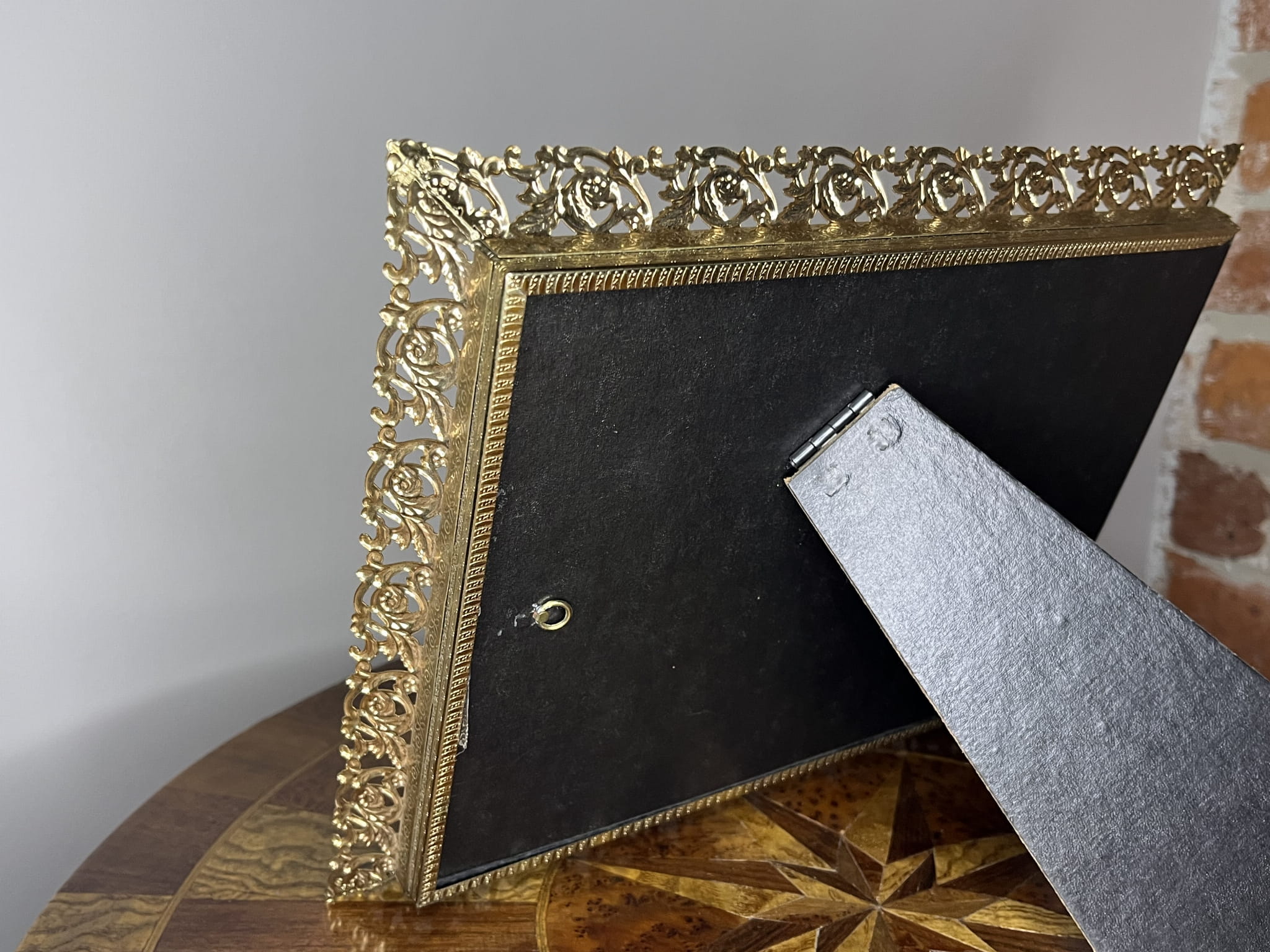 Ramka posiada z tyłu oczko do zawieszenia na ścianie, dzięki czemu może pełnić funkcję dekoracji ściennej, ale równie dobrze prezentuje się ustawiona na komodzie, konsoli czy biurku (po odpowiednim podparciu). To stylowy dodatek do wnętrz klasycznych, eklektycznych, glamour lub vintage.