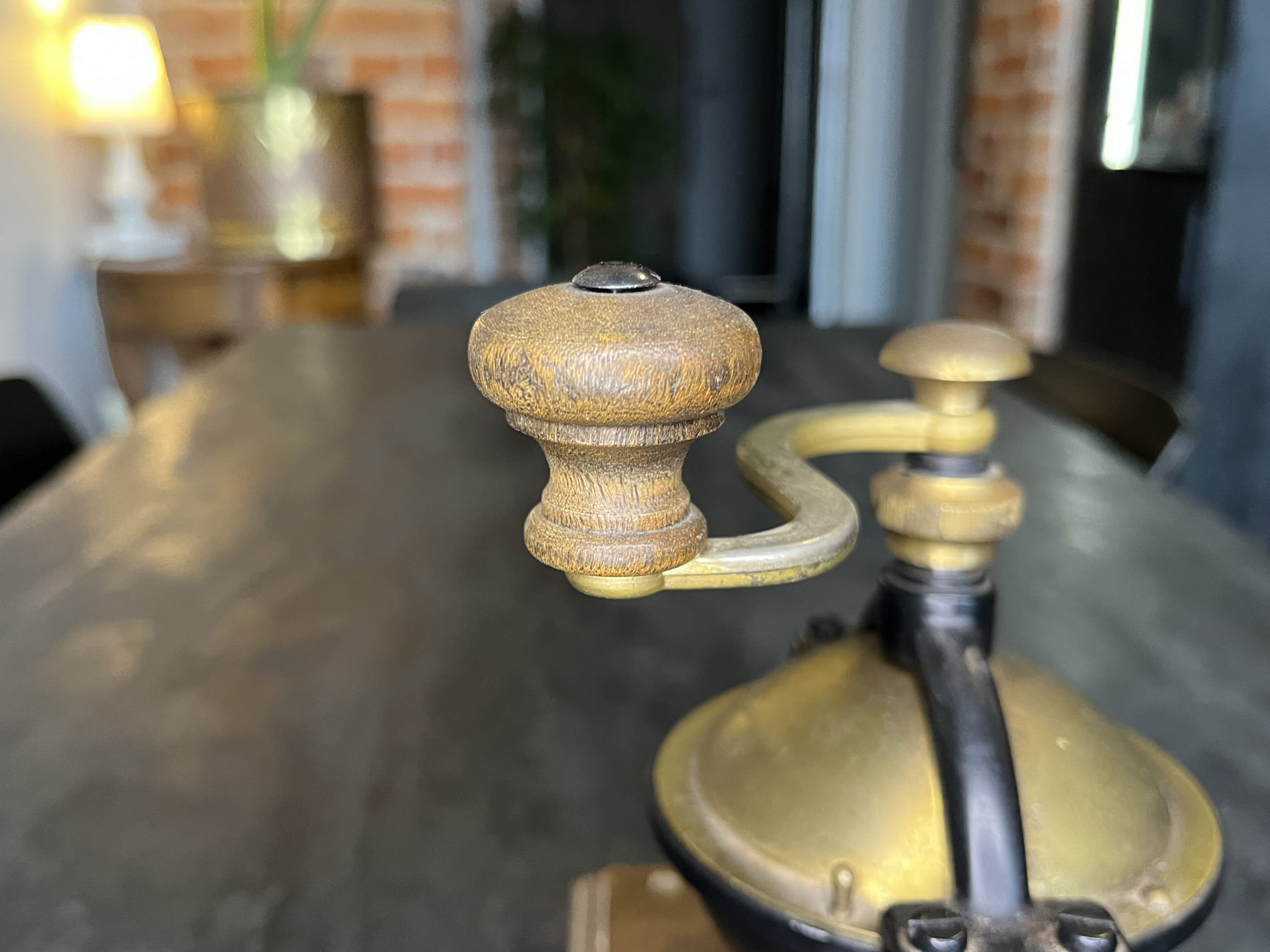 Model o klasycznej, ponadczasowej formie – połączenie drewna, metalu oraz mosiężnych detali nadaje mu elegancki, vintage charakter.