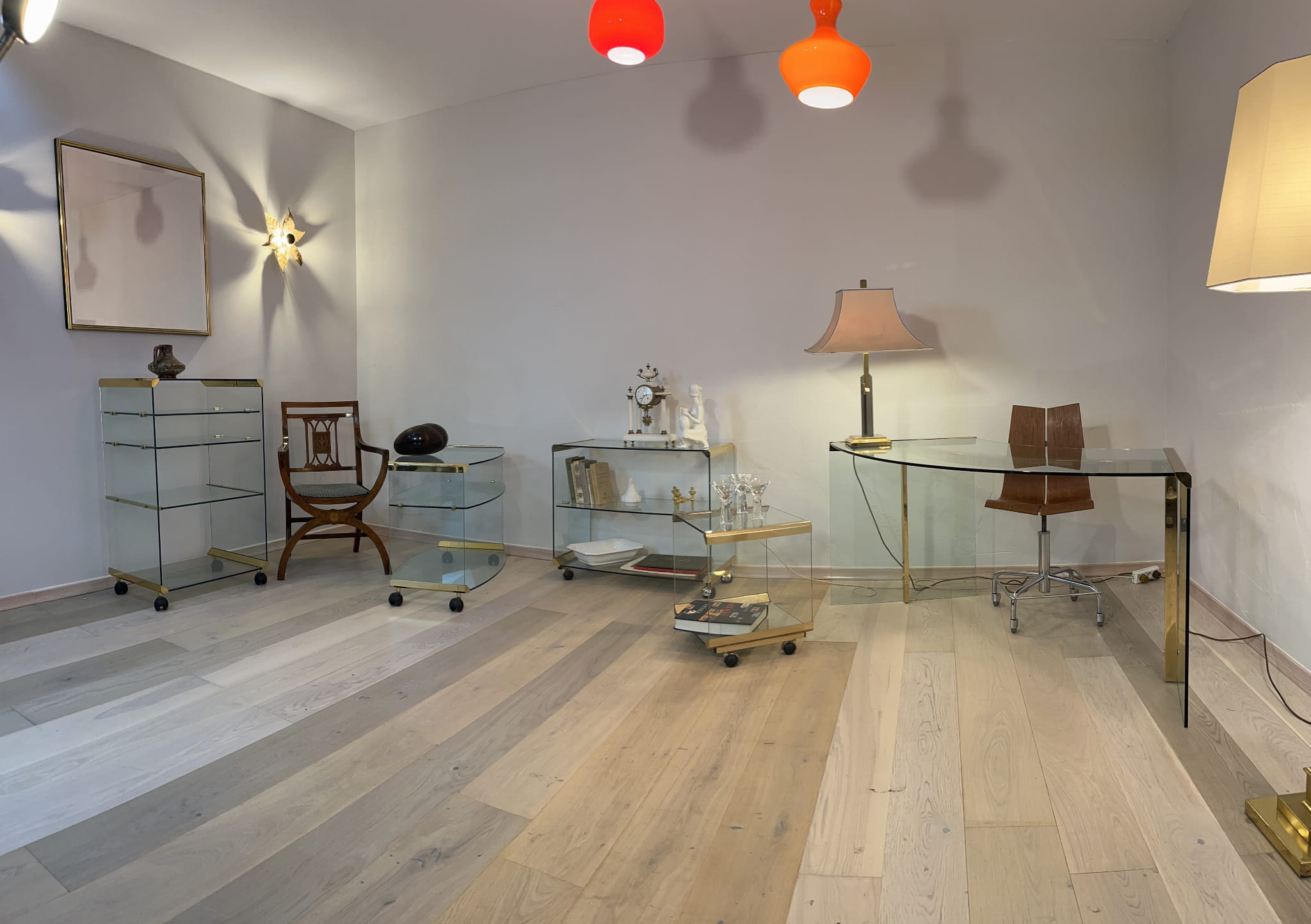 Ten wyjątkowy model łączy rzeźbiarską, lekko wygiętą formę blatu z minimalistyczną konstrukcją, tworząc wyrafinowany przykład włoskiego modernizmu z końca XX wieku.